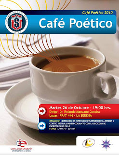 Jueves 27 de mayo "Jueves Literario" del Círculo Carlos Mondaca Cortés invita a participar en la "Muestra Literaria 2010" de autores nacidos o residentes en la Región de Coquimbo. La actividad se llevará a efecto en el Salón Manuel Magallanes Moure, Edificio Secreduc, Avenida de Aguirre 260, La Serena. Para contacto e información: cmondaca.ls@hotmail.com | La Serena ![]() |